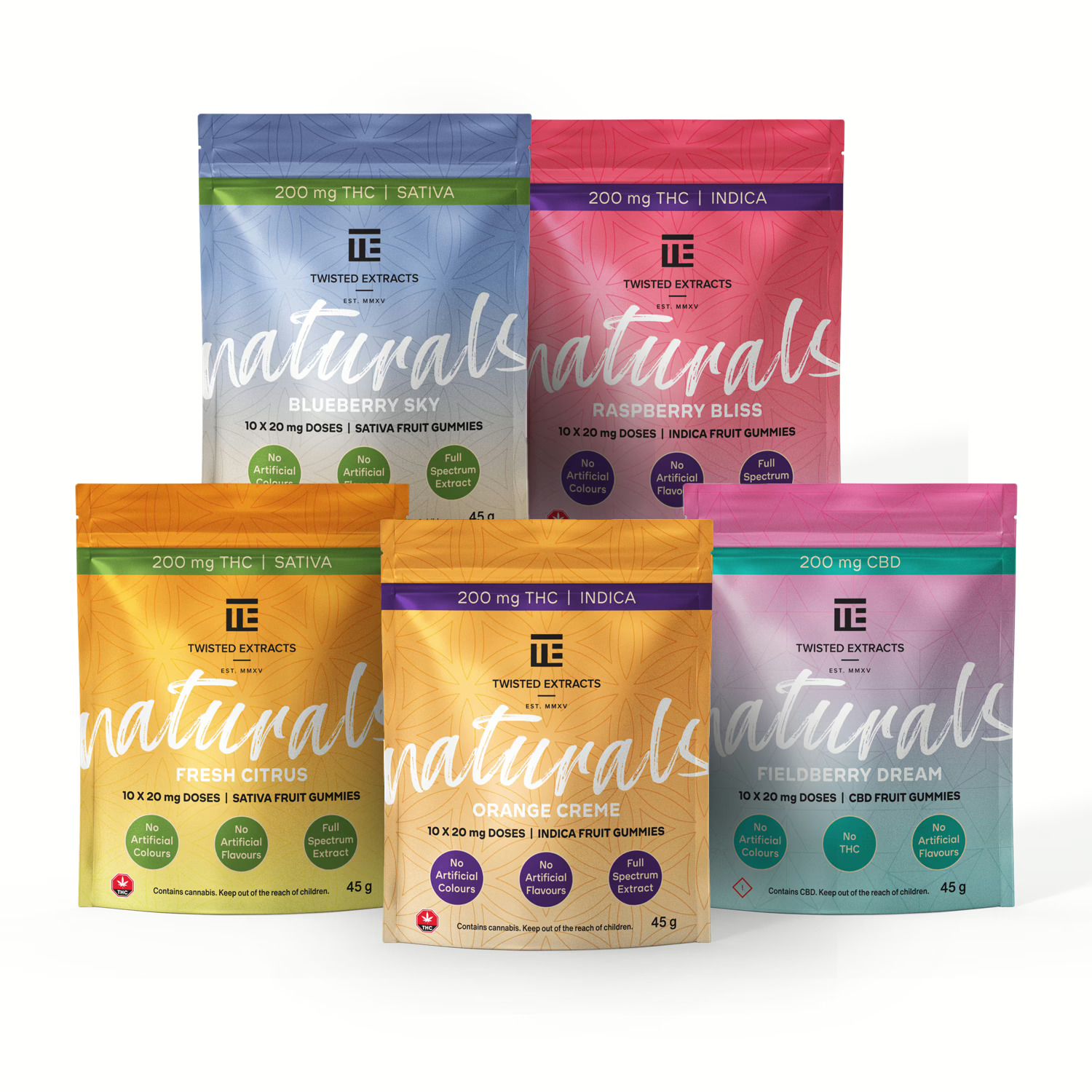 You’ll find 10 x 20mg Twisted Naturals gummies in each bag of regular strength Twisted Naturals.