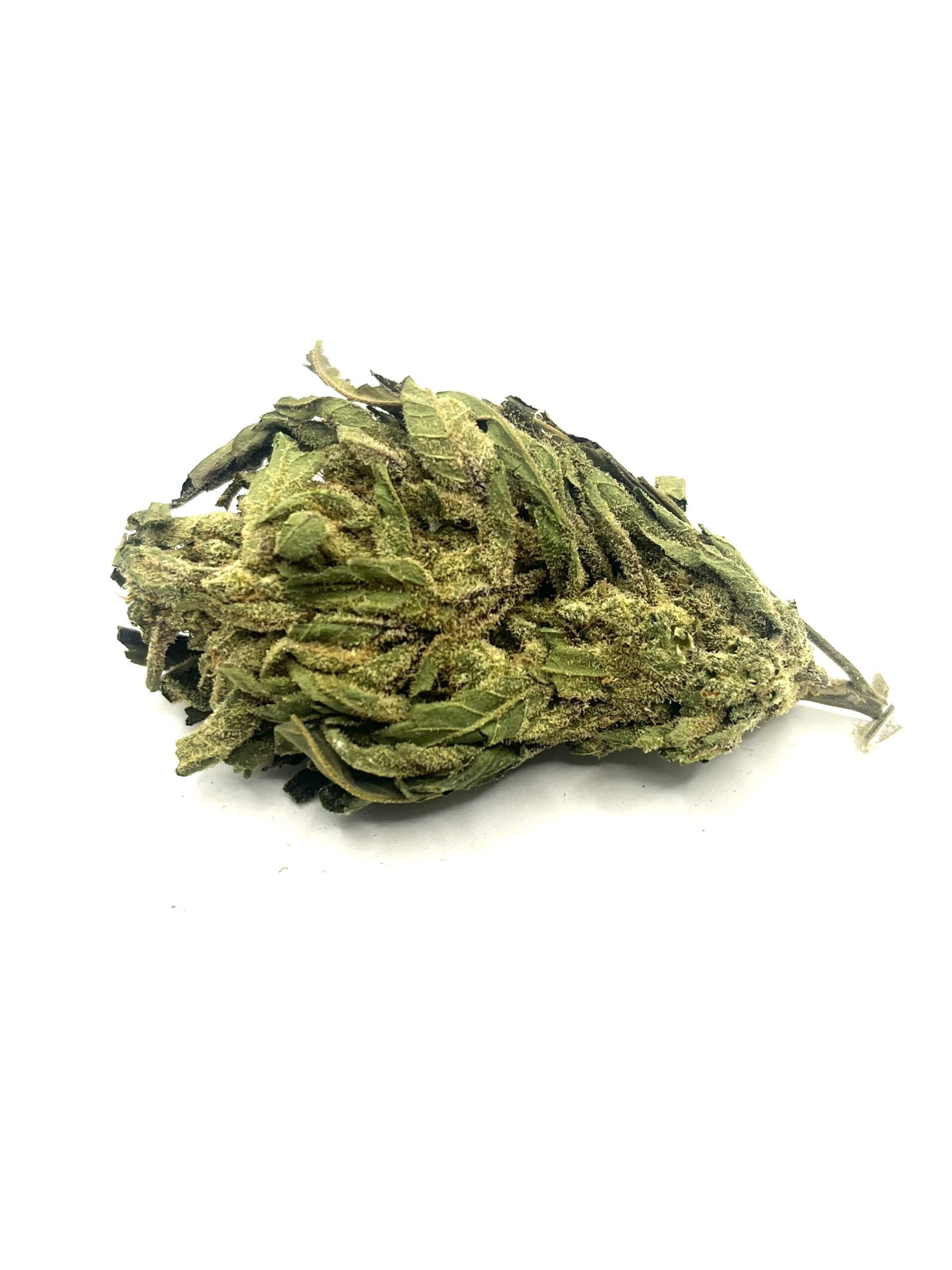 Froot by the Foot, also known as “Fruit by the Foot,” is a slightly indica dominant hybrid strain (60% indica/40% sativa) created through crossing the delicious Mythic OG X Candy Cane Auto strains. Named for the iconic snack food, Froot by the Foot packs a sweet flavor that will have you feeling nostalgic for summer days as a child. The taste is very sugary with a candy overtone that’s accented by fresh fruits and sour citrus. The aroma follows the same profile, with a sour yet fruity citrus candy overtone accented by a punch of spicy black pepper and fresh earthiness. The Froot by the Foot high isn’t quite as eye-opening, with soothing effects that will help you to feel settled rather than boosted. You’ll feel your mind hit first with a boost of happiness that lifts the spirits and infuses your brain with a heady sense of bliss. At the same time, a relaxing body high will seep into your physical form, helping you to stretch out and relax without feeling too sedated. Thanks to these effects and its high 18-23% average THC level, Froot by the Foot is often chosen to treat a variety of conditions including chronic stress or anxiety, depression or mood swings and chronic pain. This bud has oversized dense pepper-shaped emerald-green nugs with purple undertones, thick yellow-orange hairs and chunky white crystal trichomes.